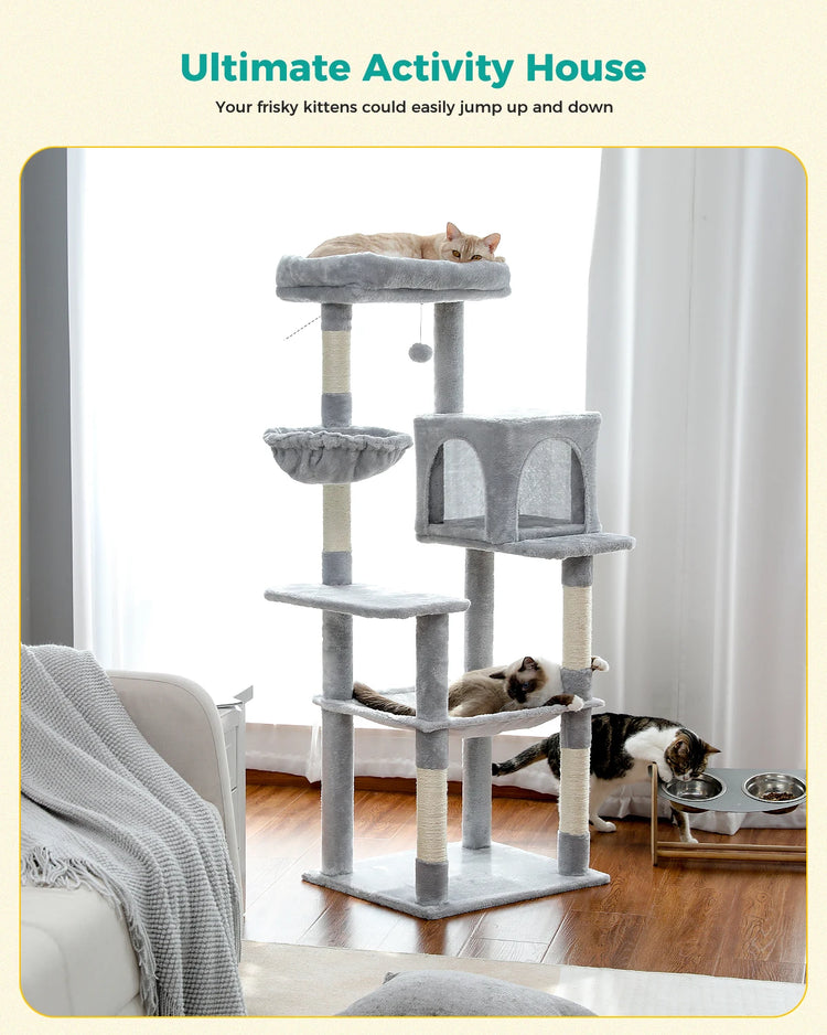 - 🐱 Healthy Scratching – Durable scratching posts protect your furniture.